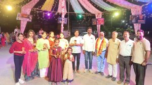 भीलवाड़ा ( बलराम वैष्णव ) :- जिला मुख्यालय पर नेहरू विहार में आज शनिवार तीसरे दिन गरबा महोत्सव, रोहित एंटरप्राइजेज स्पॉन्सर मुकेश वैष्णव पारितोषिक दिए गए ।  इस मोके पर मुख्य अतिथि श्री चेतन जी मानसिहका मोजूद रहे नेहरू विहार विकास एवं संघर्ष समिति के तत्वावधान में गरबा महोत्सव का आयोजन किया जा रहा है, जिसमें तीसरे दिन बच्चों के राउंड में ईशानी खटीक प्रथम, इशिता तिवारी द्वितीय, राधिका मुंदडा तृतीय स्थान पर रही, वही महिला गरबा राउंड में प्रथम स्थान सोनिया सेन, द्वितीय स्थान पर सुनीता मीणा व खुशी शर्मा और मिक्स गरबा राउंड में प्रथम अंजलि धाकड़, द्वितीय दिव्यांशी शर्मा व तृतीय प्रवीण जैन रही । बच्चों की शुरुआत रेस में अमृता व चेतना द्वितीय मान्यता सोमानी व दौड़ में प्रथम स्थान शुभम वैष्णव का रहा । वही नृत्य में अमृता, कोमल सोनी, दिव्यांशी कंवर, राधिका शर्मा, राजश्री, टोया, निर्णायक गोपाल पाराशर, अजय जोशी, जितेंद्र जोशी, प्रदीप शर्मा सहित भगवान सिंह चौहान गोवर्धन वैष्णव, मुकेश वैष्णव, केदार वैष्णव, लखन वैष्णव, बलराम वैष्णव, अन्य मुख्य अतिथि मौजूद रहे ।।