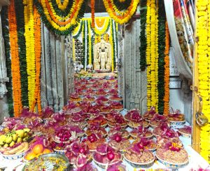 भीलवाड़ा ( बलराम वैष्णव ):- श्री माहेश्वरी समाज श्री चारभुजा जी मंदिर ट्रस्ट के बड़े मंदिर में दशहरे के महापर्व पर विष्णु अवतार चारभुजा नाथ के भीलवाड़ा क्लॉथ मर्चेंट एसोसिएशन ,भीलवाड़ा की ओर से चारभुजा नाथ के 111 किलो का 56 भोग का विशाल आयोजन रखा गया पूरे बड़े मंदिर के निज मंदिर को फूलों एवं गुब्बारों से सजाया गया ,विष्णु अवतार चारभुजा नाथ की विशेष झांकी सजाई गई चारभुजा नाथ को स्वर्ण पोशाक धारण कराई गई । ट्रस्ट मीडिया प्रभारी महावीर समदानी ने बताया कि भीलवाड़ा क्लॉथ मर्चेंट एसोसिएशन की ओर से दशहरे के अवसर पर दूसरी बार विशाल छप्पन भोग का आयोजन किया गया बाहेती परिवार की ओर से ध्वजा अर्पण की गई एवं प्रातः मंगला दर्शन के समय प्रमोद डाड की ओर से दुग्ध अभिषेक किया गया बड़े मंदिर ट्रस्टियो का स्वागत सत्कार किया गया एवं ट्रस्ट की ओर से भीलवाड़ा क्लॉथ मर्चेंट को चारभुजा नाथ की तस्वीर भेट कर अभिनंदन किया गया, भजन गंगा गायिका मधु काबरा ने चारभुजा नाथ के भजन गाकर भक्तगणों का मन मोहा, दोपहर 12:15 बजे महा आरती के बाद प्रसाद वितरण हुआ एशोसीएशन के अध्यक्ष कपिल बाहेती सचिव मुकेश सोनी कोषाध्यक्ष विनोद नागोरी संरक्षक कैलाश बाहेती, छीतरमल बाहेती ,बालू डांगी,रमेश खटोड़, ओम काबरा, अमित खंडेलवाल, विष्णु सोनी, बालकिशन खंडेलवाल ,संजय काबरा,मुकेश काबरा,विशाल बाहेती, मोनु बाहेती एवं समस्त पदाधिकारी मौजूद थे ।।