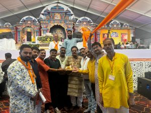 भीलवाड़ा ( बलराम वैष्णव ):- जिला मुख्यालय के नेहरू विहार में स्थित ईच्छापूर्ण बालाजी से नेहरू विहार विकास संघर्ष समिति द्वारा बागेश्वर महाराज धीरेंद्र शास्त्री को 501 फीट लंबा साफा बंधवाया गया । समिति अध्यक्ष भगवान सिंह ने बताया कि इस आयोजन में गोवर्धन वैष्णव, प्रवीण जैन, लखन वैष्णव, कैलाश सेन, हर्षवर्धन सिंह, विपुल शर्मा, दुर्गेश वैष्णव, रेखा कंवर, अंतिम प्रभा, ज्योति, पूजा, रेखा शर्मा, कांता जैन सहित समिति सदस्य मोजूद रहे ।।