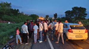 भीलवाड़ा ( बलराम वैष्णव ):- नेशनल हाईवे 758 पर ढ़ेलाणा गांव में होटल के पास एक कार व गौवंश में टक्कर हो गई । जिसमें एक महिला घायल हो गई, सुचना पर सवाईपुर चौकी पुलिस मौके पर पहुंची । ढ़ेलाणा चौराहे पर श्री देव होटल के पास कार व गौवंश में टक्कर हो गई, जिसमें कार सवार टीना पत्नी प्रकाश सैन निवासी सांगानेर, भीलवाड़ा के सिर पर चोट लगी, महिला का सवाईपुर चिकित्सालय में प्राथमिक उपचार किया गया । कार सवार जोगणियां माता के दर्शन कर जा रहे थे । सुचना पर सवाईपुर चौकी कांस्टेबल संदीप कुमार मौके पर पहुंचे । दुर्घटना के बाद मौके पर ग्रामीणों व राहगीरों की भारी भीड़ लगी ।।