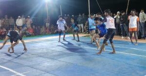 भीलवाड़ा ( बलराम वैष्णव ):- सवाईपुर क्षेत्र के लखमणियास गांव में आयोजित रात्रिकालीन वीर तेजा कबड्डी प्रतियोगिता के चौथे दिन मंगलवार रात्रि को पांच मुकाबले खेले गए, जिसमें आदर्श नगर भीलवाड़ा, मेजबान लखमणियास, बनकाखेड़ा, कोटड़ी, भीलवाड़ा की टीमें विजेता रही । ग्रामीण कालूलाल जाट ने बताया कि वीर तेजा कबड्डी प्रतियोगिता का आयोजन गांव में तेजाजी चौक में हो रहा, वीर तेजाजी महाराज गौशाला समिति के सहयोग से प्रतियोगिता आयोजित हो रही ।शनिवार से चल रही प्रतियोगिता में मंगलवार रात्रि को पहला मुकाबला आदर्श नगर भीलवाड़ा बनाम हलेड़ के बीच खेला गया, जिसमें आदर्श नगर भीलवाड़ा 50-36 अंकों से विजेता बनी । दुसरा मुकाबला मेजबान लखमणियास बनाम श्री नगर के बीच खेला गया, जिसमें मेजबान लखमणियास 26-15 अंकों से विजेता हुई । तीसरा मुकाबला पौड़रास बनाम बनकाखेड़ा के बीच खेला गया, कांटे की टक्कर वाले इस मुकाबले का नतीजा आखिरी मिनट में निकाला, जिसमें बनकाखेड़ा ने पौड़रास को एक अंक से पराजित करते हुए, 36-35 से विजय रहा । चौथा मुकाबला कोटड़ी बनाम कालांश के बीच खेला गया, जिसमें कोटड़ी 39-19 से जीती । पांचवां मुकाबला भीलवाड़ा बनाम कोटड़ी के बीच खेला गया, जिसमें भीलवाड़ा 37-28 से विजय हुआ ।।