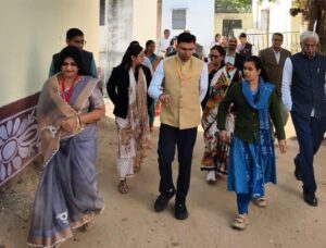 भीलवाड़ा ( बलराम वैष्णव ):- शिक्षा से वंचित रह रहे बच्चों और विद्यार्थियों को विद्यालय से जोड़े एवं कमजोर विद्यार्थी पर विशेष ध्यान देकर उन्हें आगे लाएं, यह कहना था गृह मंत्रालय भारत सरकार से आए वरिष्ठ आईएएस अधिकारी भगवती प्रसाद कलाल का । वरिष्ठ आईएएस अधिकारी भगवती प्रसाद कलाल आज सोमवार को एक दिवसीय दौरे पर भीलवाड़ा आए । इस दौरान सवाईपुर कस्बे की राजकीय उच्च माध्यमिक विद्यालय का निरीक्षण किया । निरीक्षण के दौरान उन्होंने विद्यालय की कार्य प्रणाली विद्यालय स्टाफ और विद्यालय की प्रिंसिपल डॉ. प्रतिष्ठा ठाकुर के कार्य की सराहना की एवं कहा की जो विद्यार्थी स्कूल आने से वंचित रह रहे हैं या स्कूल छोड़ गए हैं उन्हें वापस शिक्षा से जोड़ने के लिए प्रयास करने चाहिए तथा विद्यालय में अध्यनरत कमजोर विद्यार्थियों पर विशेष ध्यान देकर उन्हें आगे लाना चाहिए तथा विद्यार्थियों के अध्ययन सहित अन्य गतिविधियों के बारे में उनके अभिभावकों को भी इस संबंध में जानकारी देते हुए उनसे संवाद कायम रखना चाहिए, वरिष्ठ आईएएस अधिकारी कलाल ने कहा कि विद्यालय केवल पढ़ाई का केंद्र ही नहीं यह विकास की पाठशाला भी है । वरिष्ठ आईएएस अधिकारी भगवती प्रसाद कलाल के साथ निरीक्षण के दौरान जिला परिषद के मुख्य कार्यकारी अधिकारी चंद्रभान सिंह भाटी, मुख्य जिला शिक्षा अधिकारी अरूणा गारू, कोटड़ी उपखंड अधिकारी तानिया रिणवा, मुख्य ब्लॉक शिक्षा अधिकारी अशोक पारीक, कोटड़ी विकास अधिकारी कोटडी रामविलास मीणा, जिला योजना अधिकारी, सांख्यिकी अधिकारी सोनम कोठारी सहित कई अधिकारी मौजूद थे । इन सभी अधिकारियों ने विद्यालय में संचालित गणित की प्रयोगशाला, व्यावसायिक शिक्षा और नक्षत्र गार्डन को देखा तथा विद्यालय में साफ सफाई और विद्यालय संचालन की सराहना करते हुए विद्यालय स्टाफ और विद्यालय की प्रिंसिपल डॉ. प्रतिष्ठा ठाकुर की कार्यप्रणाली एवं नवाचार की सराहना की । विद्यालय आगमन पर इन सभी अधिकारियों का विद्यालय के प्रिंसिपल डॉ. ठाकुर और विद्यालय स्टाफ ने स्वागत किया एवं साफा और उपारणा पहनाकर स्वागत किया । इस अवसर पर विद्यालय की 11वीं कक्षा की एक छात्रा प्रियांशी श्रोत्रिय की स्वरचित कविता सुनकर सभी अतिथि भाव विभोर हो गए । इस अवसर पर विद्यालय विकास समिति के सदस्य भी मौजूद थे ।।