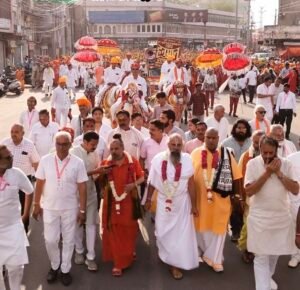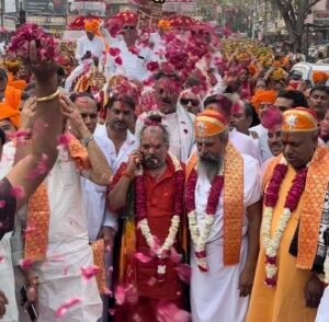 कथा वाचक श्री प्रदीप मिश्रा का कथा आयोजन समिति द्वारा भव्य स्वागत किया गया