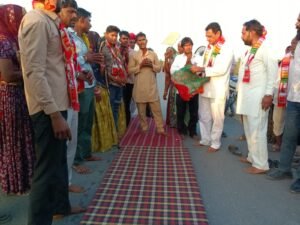 भीलवाड़ा ( बलराम वैष्णव ):- क्षेत्र के बड़लियास कस्बे के एक युवक ने अपनी मनोकामना पूर्ण होने पर अपने घर से 8 किलोमीटर दूर चौधरियास गांव में देवनारायण भगवान के मंदिर तक दंडवत यात्रा की । ग्रामीण हेमराज कीर में बताया की बड़लियास निवासी विनोद कीर ने चौधरियास गांव में स्थित देवनारायण भगवान से मनोकामना की थी, जो अब मनोकामना पूर्ण होने पर आज शुक्रवार दोपहर 2:00 बजे अपने घर से डीजे ढोल-नगाड़े के साथ दंडवत यात्रा प्रारंभ की, तपती दोपहरी भी विनोद की भक्ति को नहीं रोक पाई और वह तेज धूप में भी दंडवत यात्रा करते हुए चौधरियास स्थित देवनारायण मंदिर पर पहुंचे, वहीं इसी दौरान रास्ते में लोगों ने जगह-जगह दंडवत यात्रा का स्वागत किया ।।