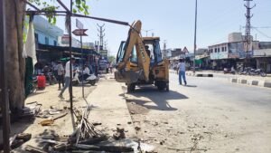 भीलवाड़ा ( बलराम वैष्णव ):- भारतीय राष्ट्रीय राजमार्ग प्राधिकरण 758 द्वारा सोमवार को अतिक्रमण हटाते हुए होर्डिंग व बोर्डो को हटाया गया, जिससे दुकानदारों में अफरा-तफरी मंच गई । भारतीय राष्ट्रीय राजमार्ग प्राधिकरण ने राजमार्ग 758 पर सवाईपुर चौराहा व ढ़ेलाणा चौराहा पर स्थित दुकानदारों को गत दिनों नोटिस देकर दुकानों के बाहर हो रहे अतिक्रमण को हटाने की हिदायत दी थी । आज सोमवार को राष्ट्रीय राजमार्ग पर सवाईपुर चौराहे पर नाला व सड़क के बीच से 15 मीटर के दायरे में हो रहे अतिक्रमण हटाकर होर्डिंग व बोर्डो आदि को हटाया गया, इस कार्रवाई के बाद दुकानदार दुकानों के बाहर रखें सामानों व होर्डिंग को सिमेटने लगे । वही ढ़ेलाणा चौराहे पर सड़क किनारे लगे बोर्ड व होर्डिंग को हटाने की कार्रवाई की, जो आगे भी जारी रहेगी ।।